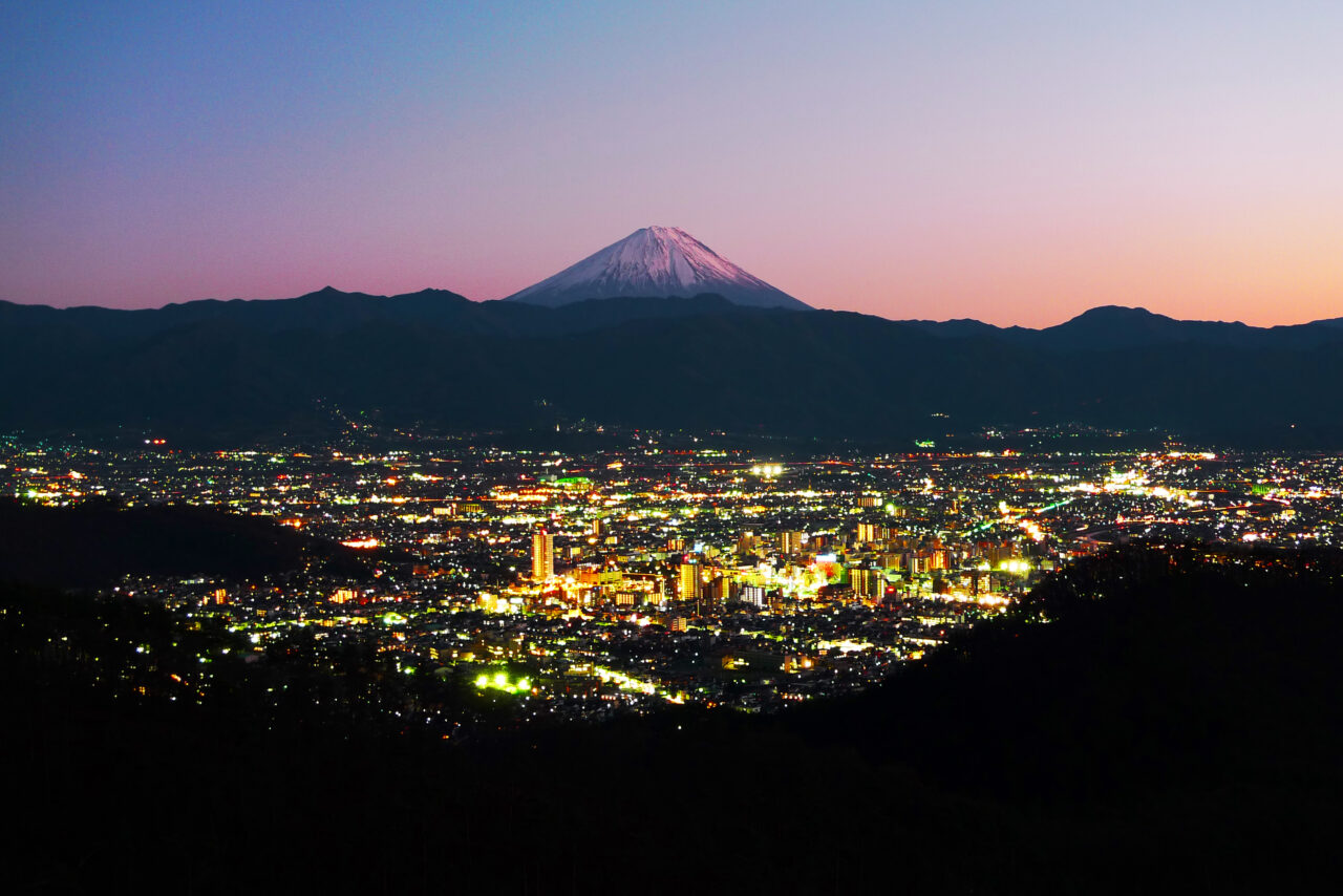 令和2年に日本遺産に認定された「国の特別名勝・御嶽昇仙峡」の大自然には、市街地からわずかな時間でアクセスできます。日本一の渓谷美を眺望できるだけでなく、アウトドアと文化が同時に楽しめるアクティビティ体験やライトアップの他、オープントップバスによる周遊など新たな取り組みも行われていて、何度でも訪れたくなります。昇仙峡から甲府方面に下る和田峠の見晴らし広場は、富士山と甲府盆地の夜景が望めるスポットとなっています。