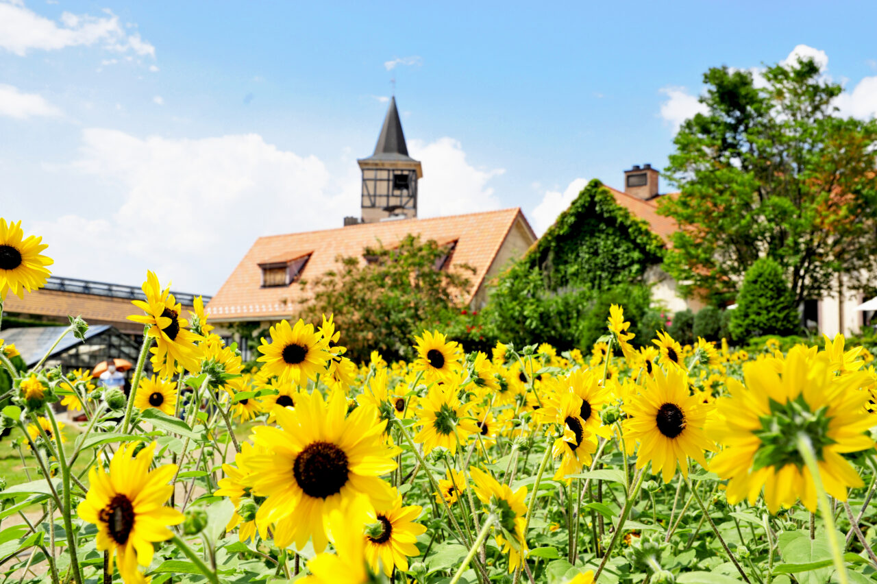 山梨県・茅ヶ岳(かやがたけ)の山麓に広がる大自然の中にある「花と幸せのテーマビレッジ ハイジの村」。ハイジの世界観を楽しもうと、多くの人々が訪れています。 季節ごとの花が園内を彩る中、8月に開花の最盛期を迎えるのは、8万輪のひまわり。ひまわりと一言で言っても、形、色合い、大きさに至るまで、その種類は様々。広大な敷地に咲き誇るさまは、圧巻です。映画のワンシーンのように、ひまわりを独り占めして写真撮影するのもGOOD!お気に入りの形や色合いを見つけ、ひまわりアルバムを作ってみるのも楽しいかもしれません。このシーズンだけの特別感あふれる景色を、旅の思い出に収めてみませんか。