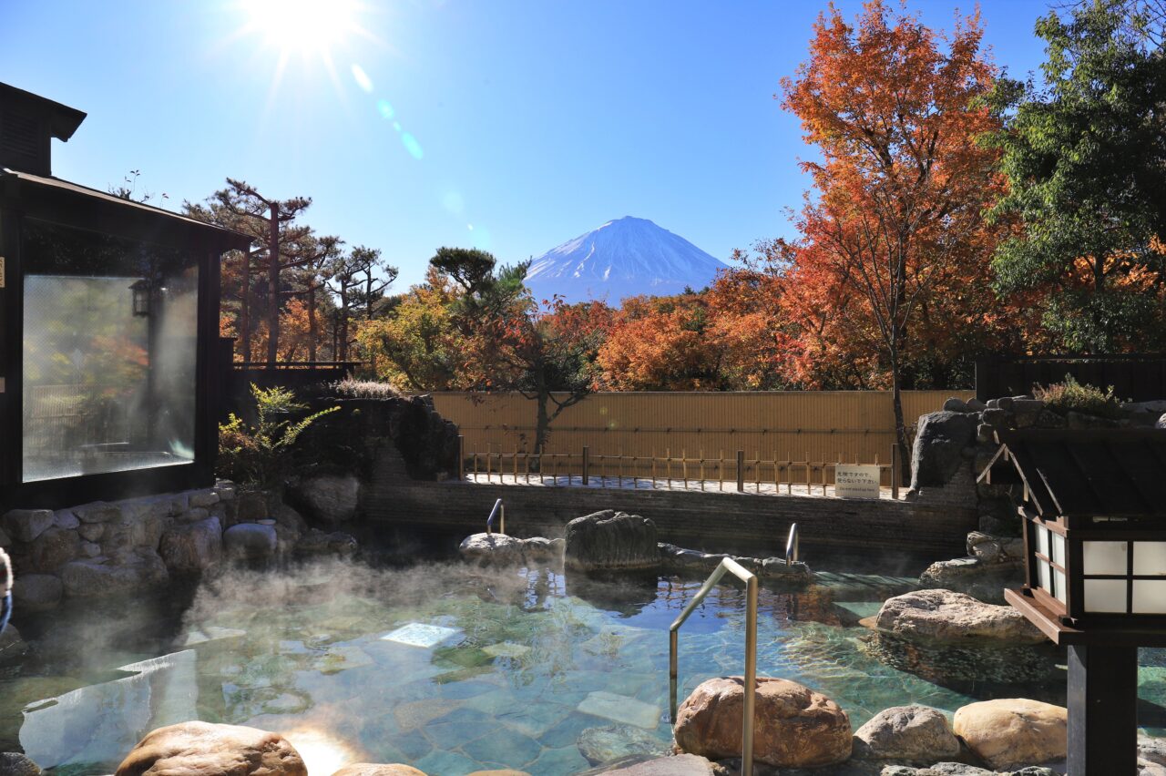 11月21日~26日は「いい風呂ウィーク」を期間限定で開催。天気が良ければ、真正面に迫力満点の富士山を眺めることができる個室『有料休憩室』の割引、平日&数量限定『ゆらり御膳』、ボディリフレッシュ利用者への『ふじざくら命水』ペットボトル1本プレゼント、『迎賓風呂』の利用割引など様々な特典が用意されています。ダイナミックな富士山を間近に望む開放感ある湯処で“ゆらり”とした時間をお過ごしください。